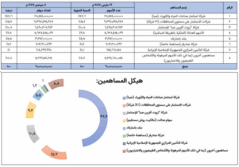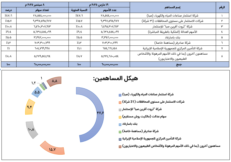 هيكل مساهمي الشركة في نهاية العام المنتهي في 30 إسفند 1403 هجري شمسي (19 مارس 2025 ميلادي) هو كما هو موضح في الجدول أدناه: