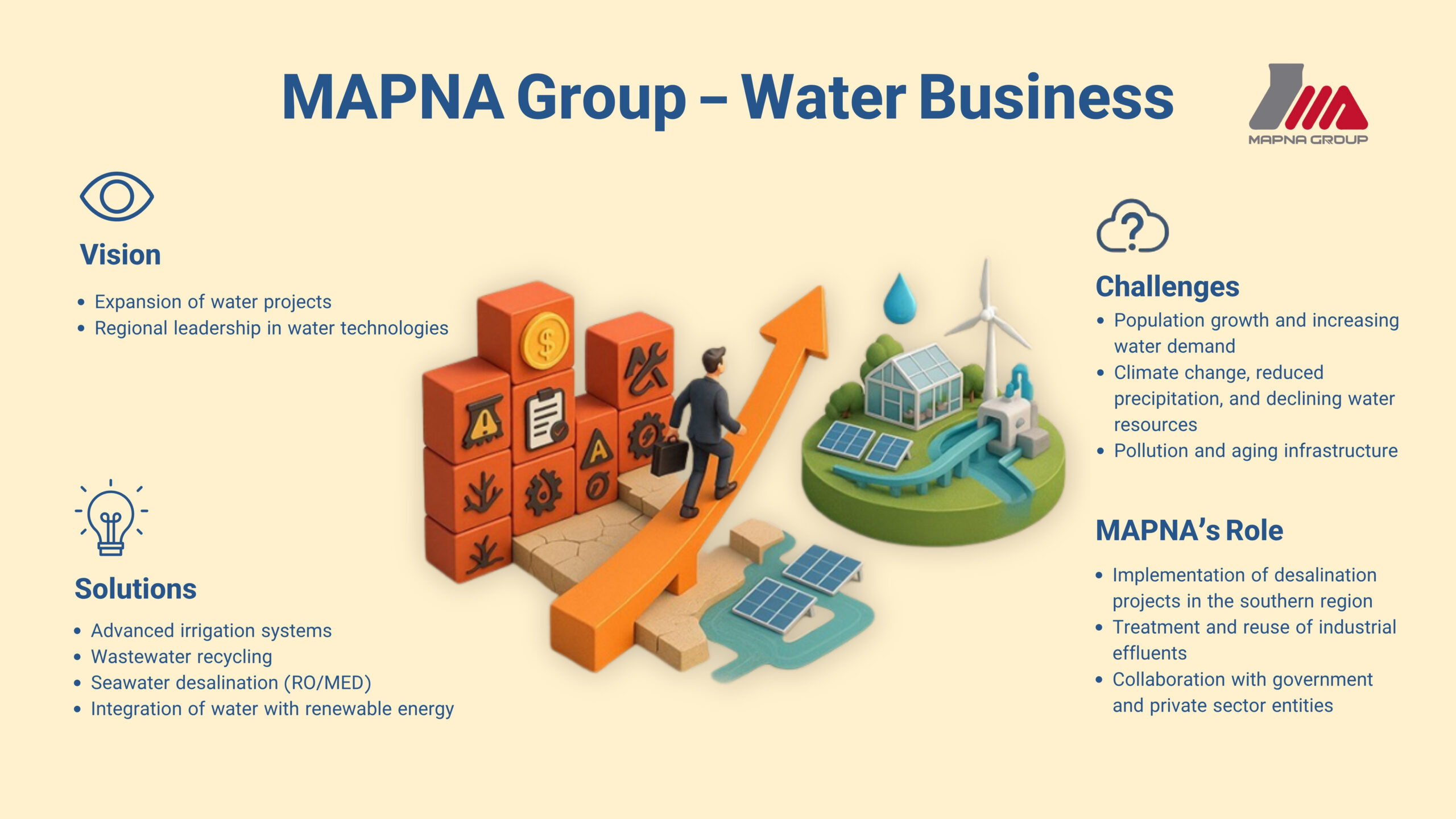 MAPNA Group has expanded into the water sector, investing in desalination, wastewater recycling and agricultural water efficiency as Iran confronts mounting water stress.